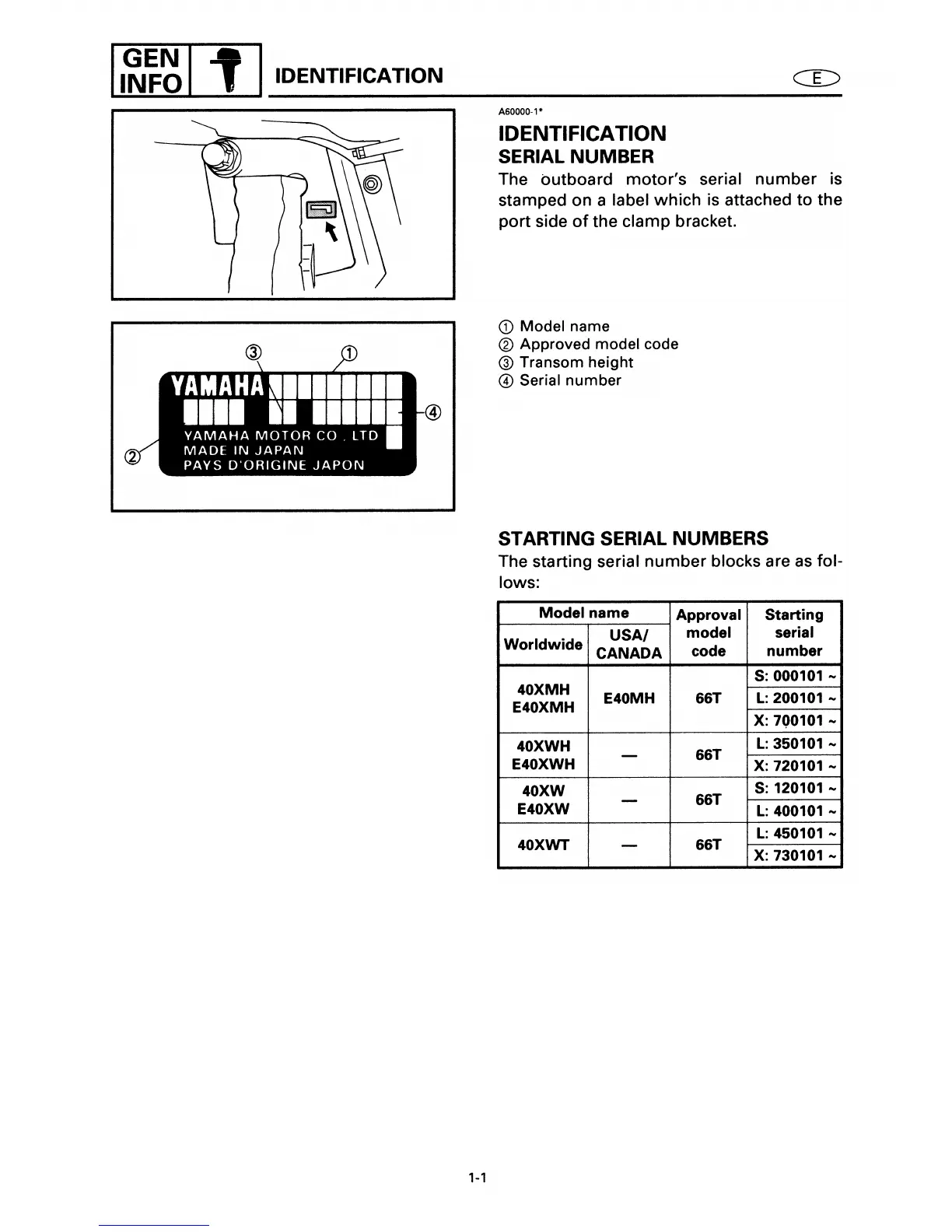Yamaha E40X - Identification Serial Number; Starting Serial Numbers