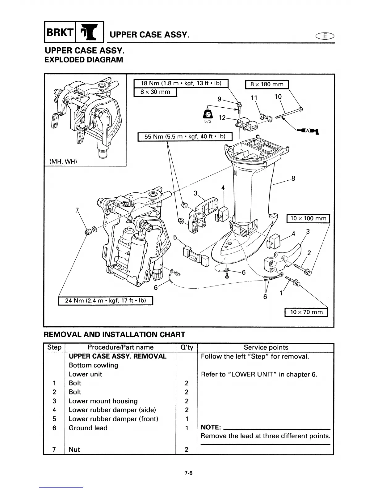 Yamaha E40X - Upper Case Assy Exploded Diagram;Removal and Installation Chart
