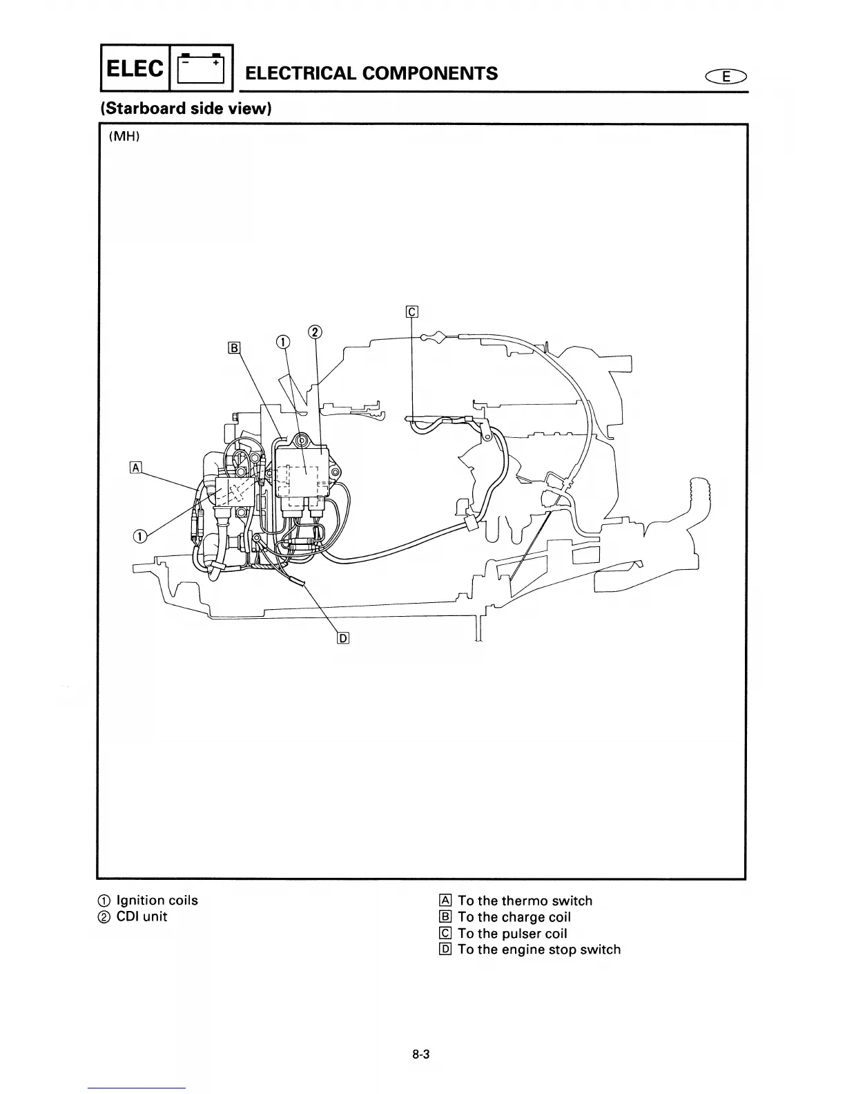 Yamaha E40X - Electrical Components (Starboard Side View)