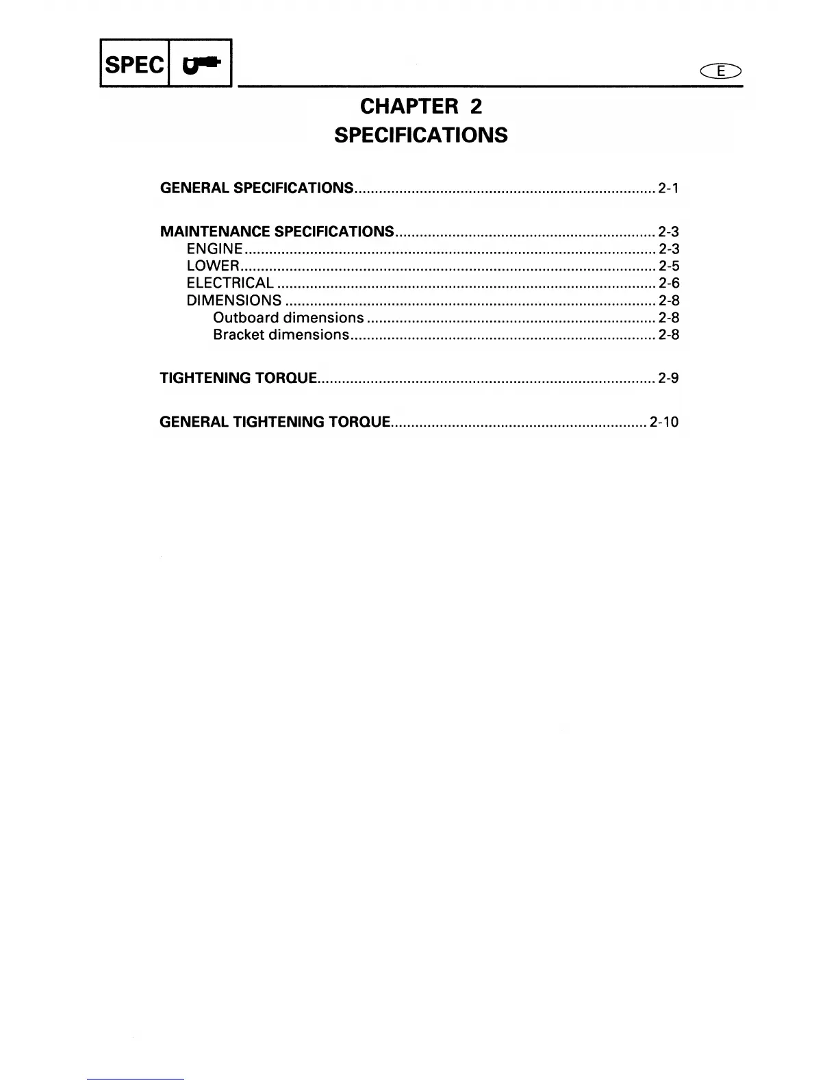Yamaha E40X - CHAPTER 2 SPECIFICATIONS