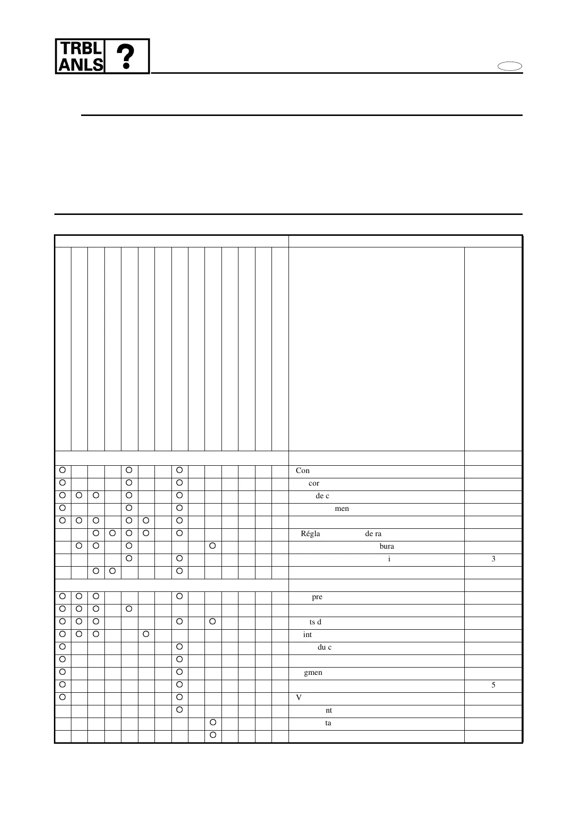 TABLEAU DE RECHERCHE DE L'ORIGINE DES PANNES