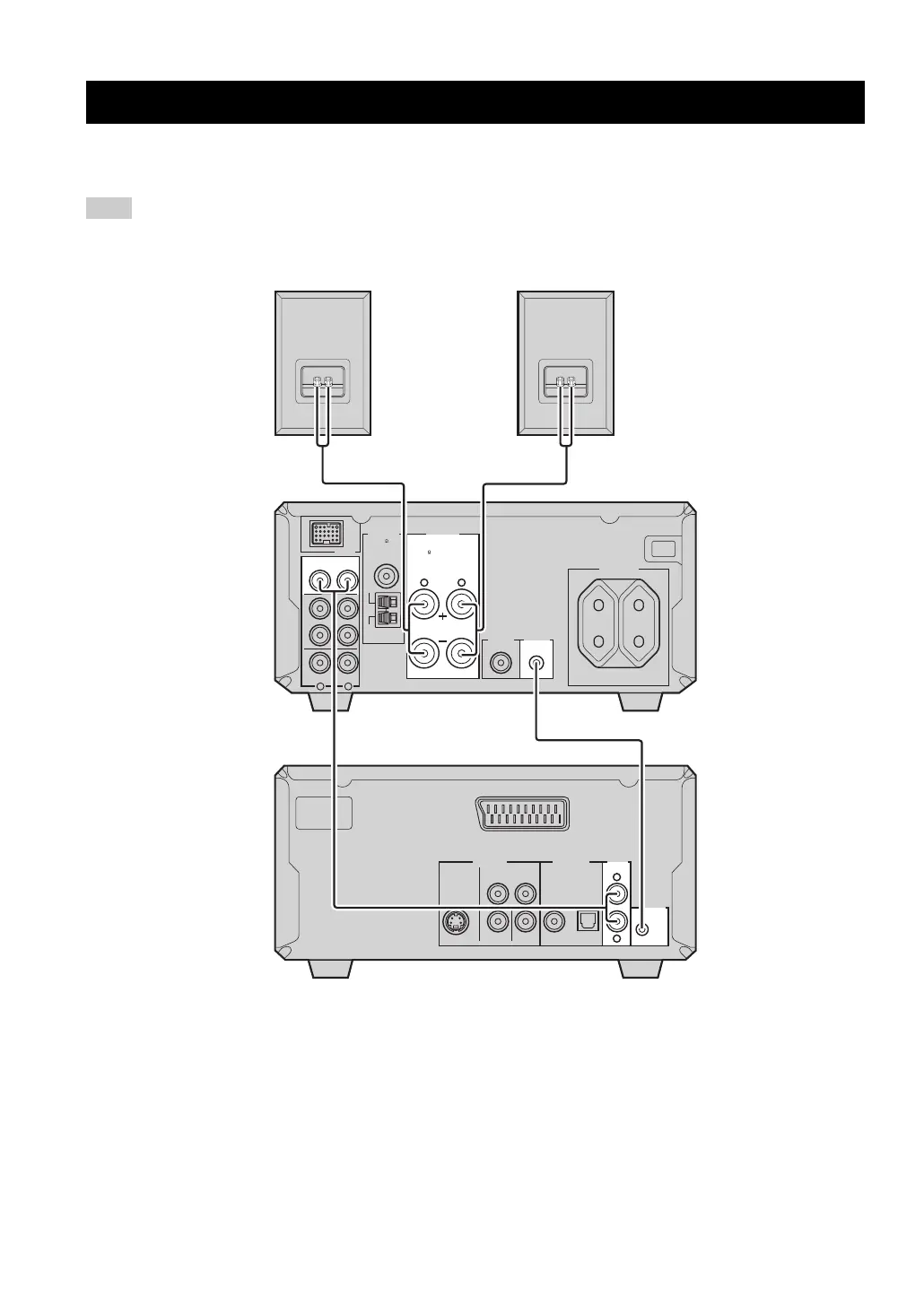 (R) of the receiver to the speaker terminals of the right speaker using the speaker cables supplied with the speaker set