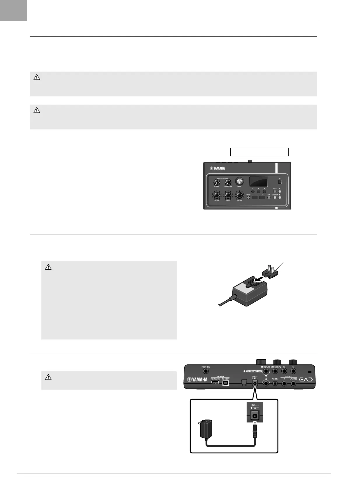 • For AC adaptors with a removable plug, only use the