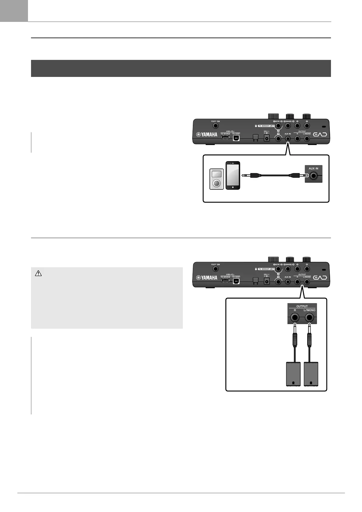 Connect the OUTPUT [R]/[L/MONO] jacks to the PA system.
