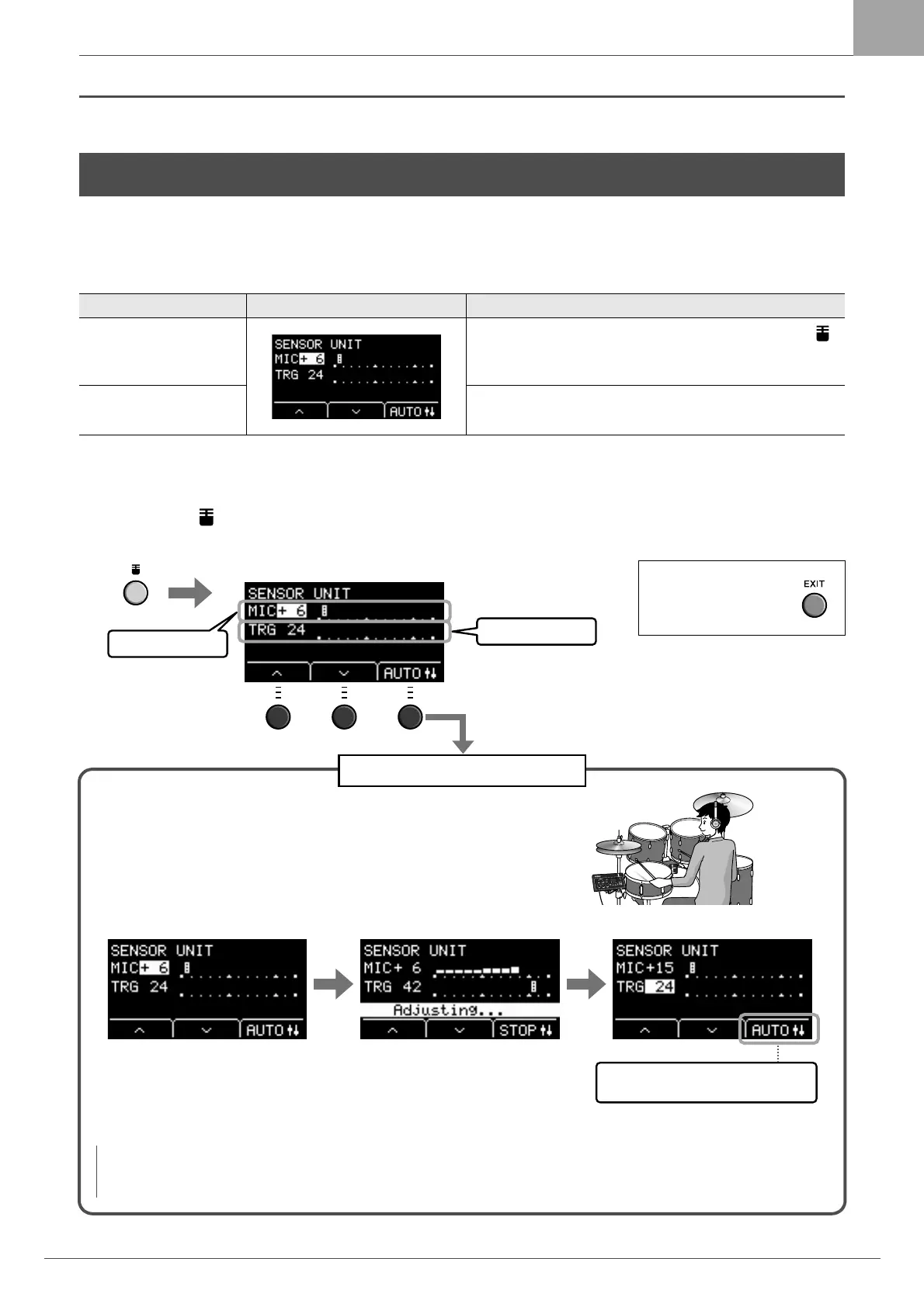 Adjust the gain and sensitivity settings for the Mic sensor and Trigger sensor built into the Sensor Unit. When you need to