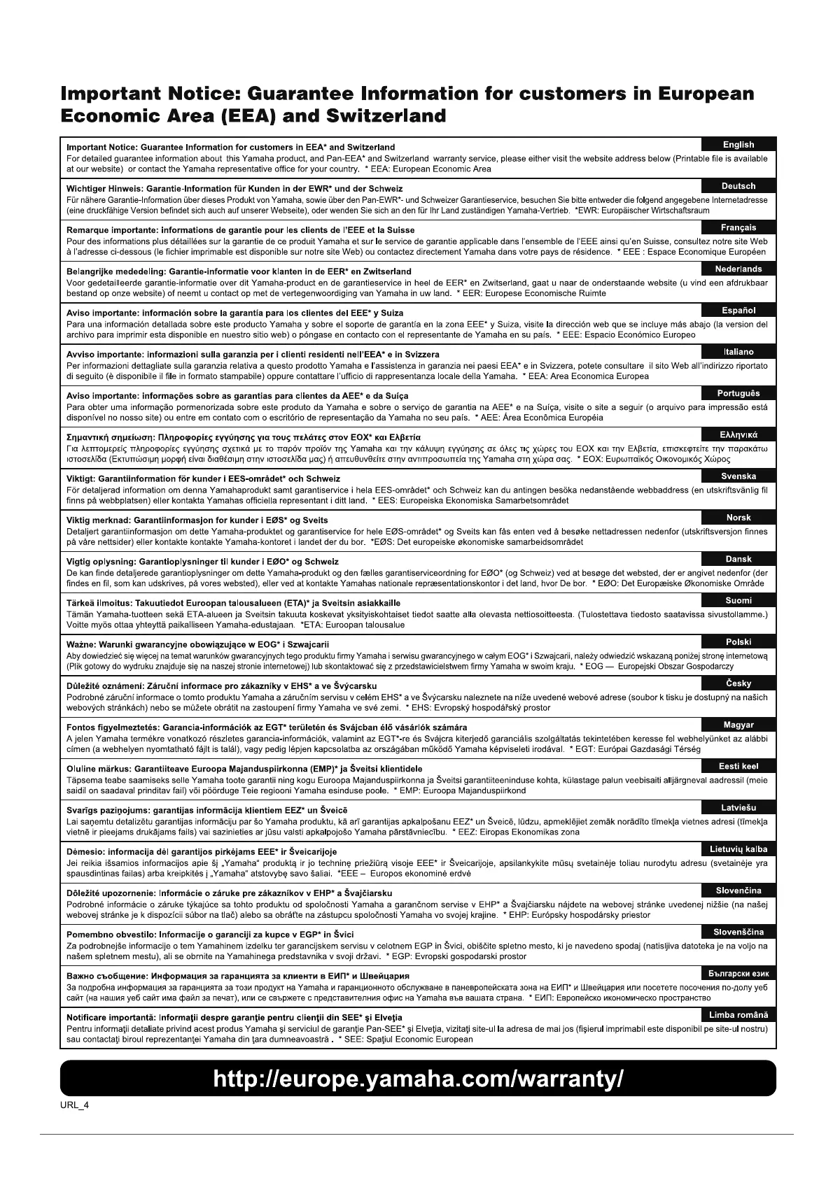 Yamaha EAD10 - Guarantee Information for EEA;Switzerland