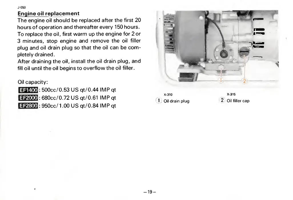 Yamaha EF1400 - Engine Oil Replacement Procedure