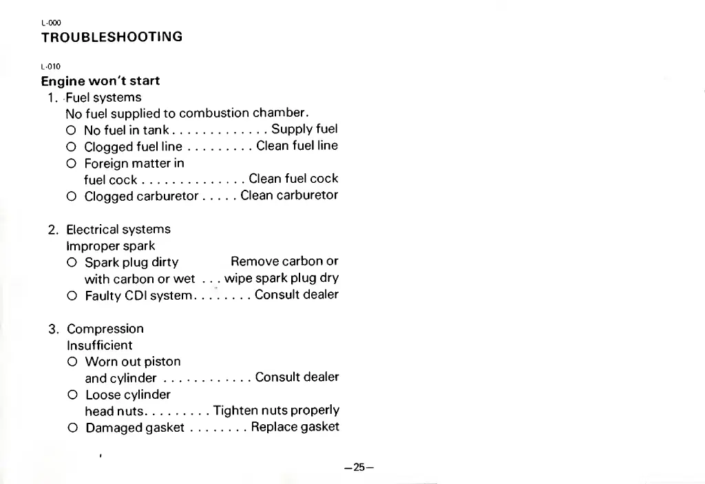 Yamaha EF1400 - Troubleshooting; Engine Start Issues