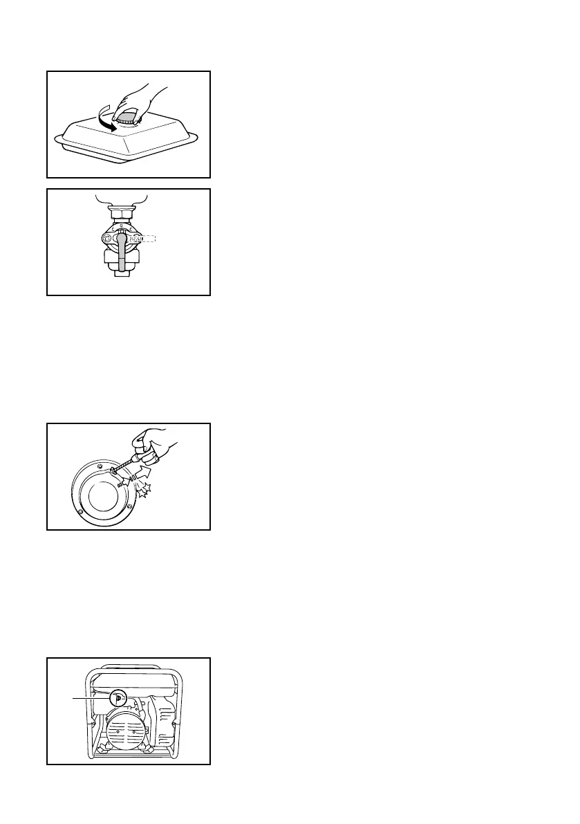 Remove the fuel tank cap by turning it counterclock-