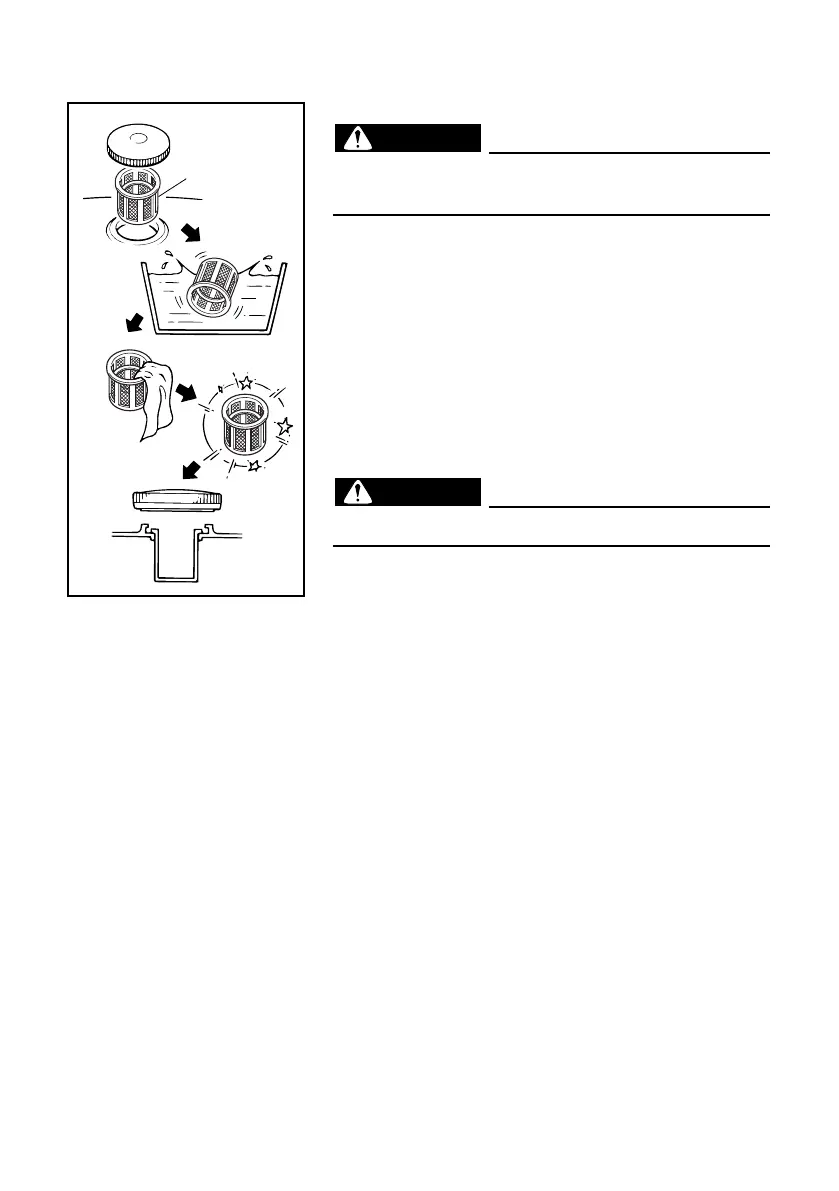 1. Remove the fuel tank cap and fuel filter.