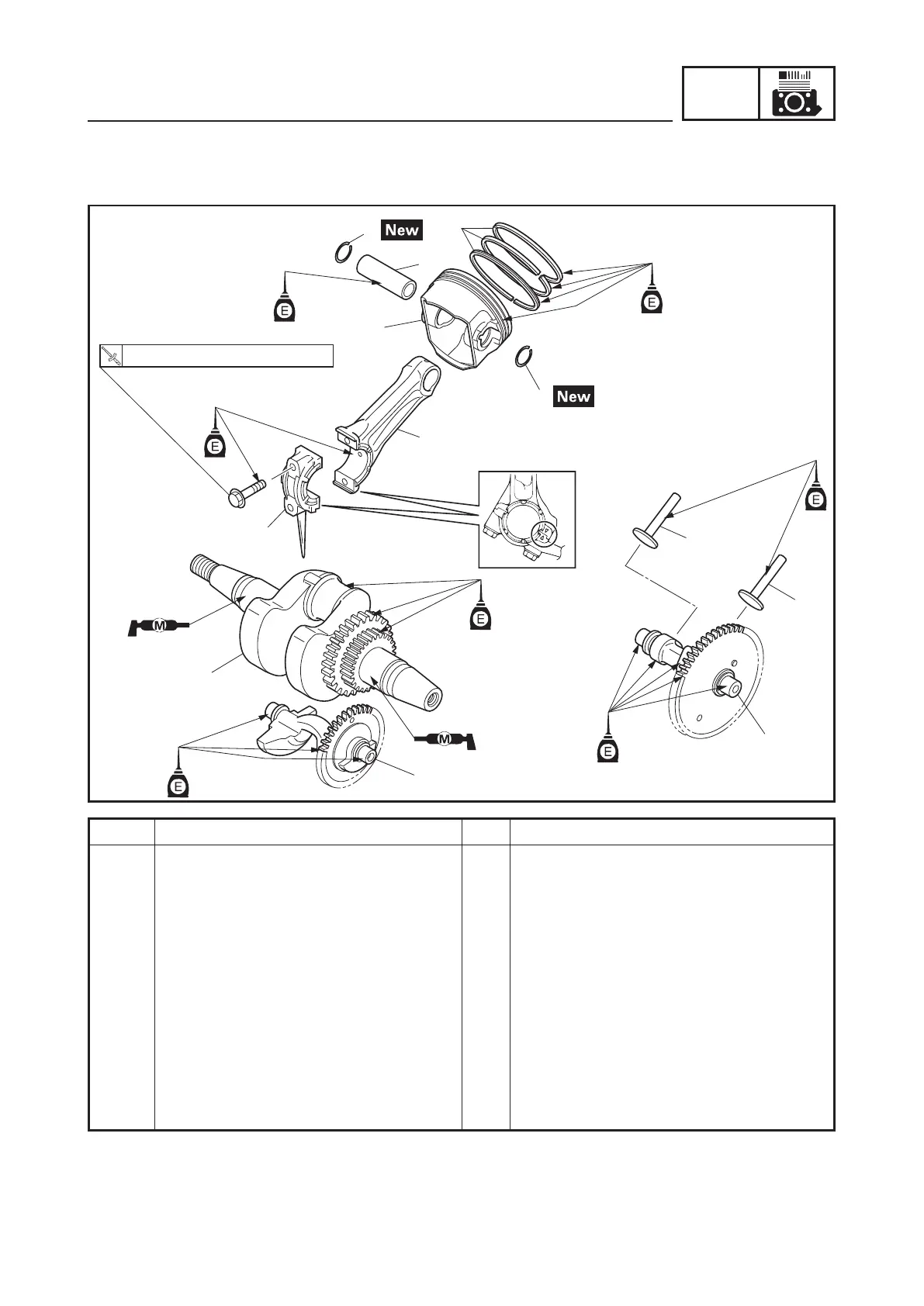 PISTON, CAMSHAFT, CRANKCASE, AND