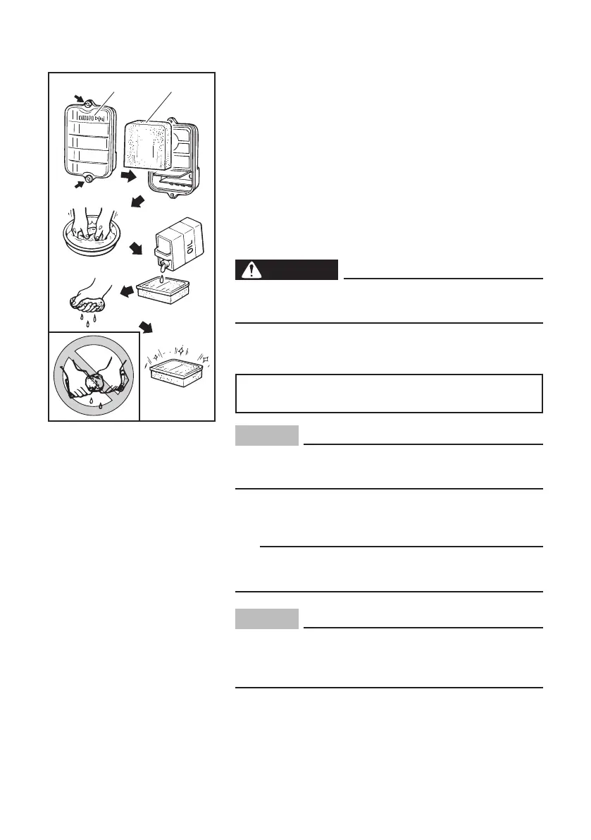 Do not wring out the foam element when squeez-