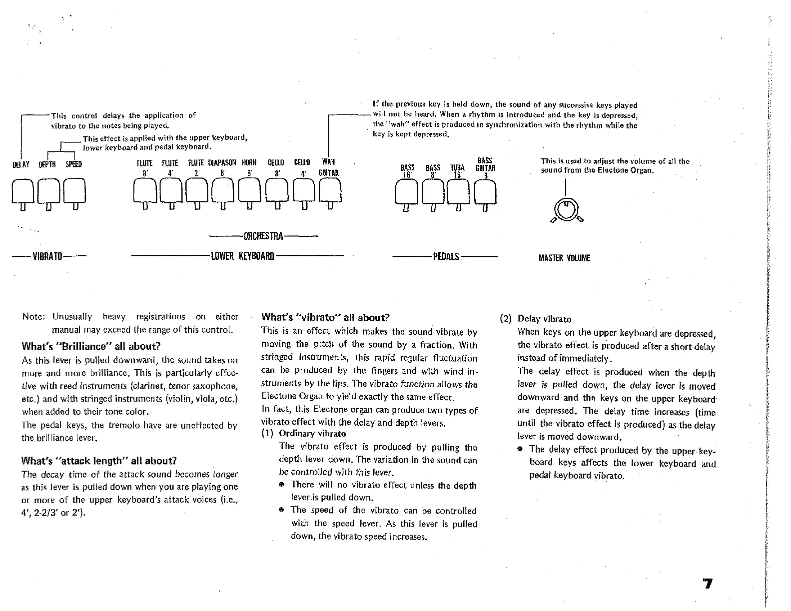 Yamaha Electone 405 - Brilliance, Attack, and Vibrato Effects