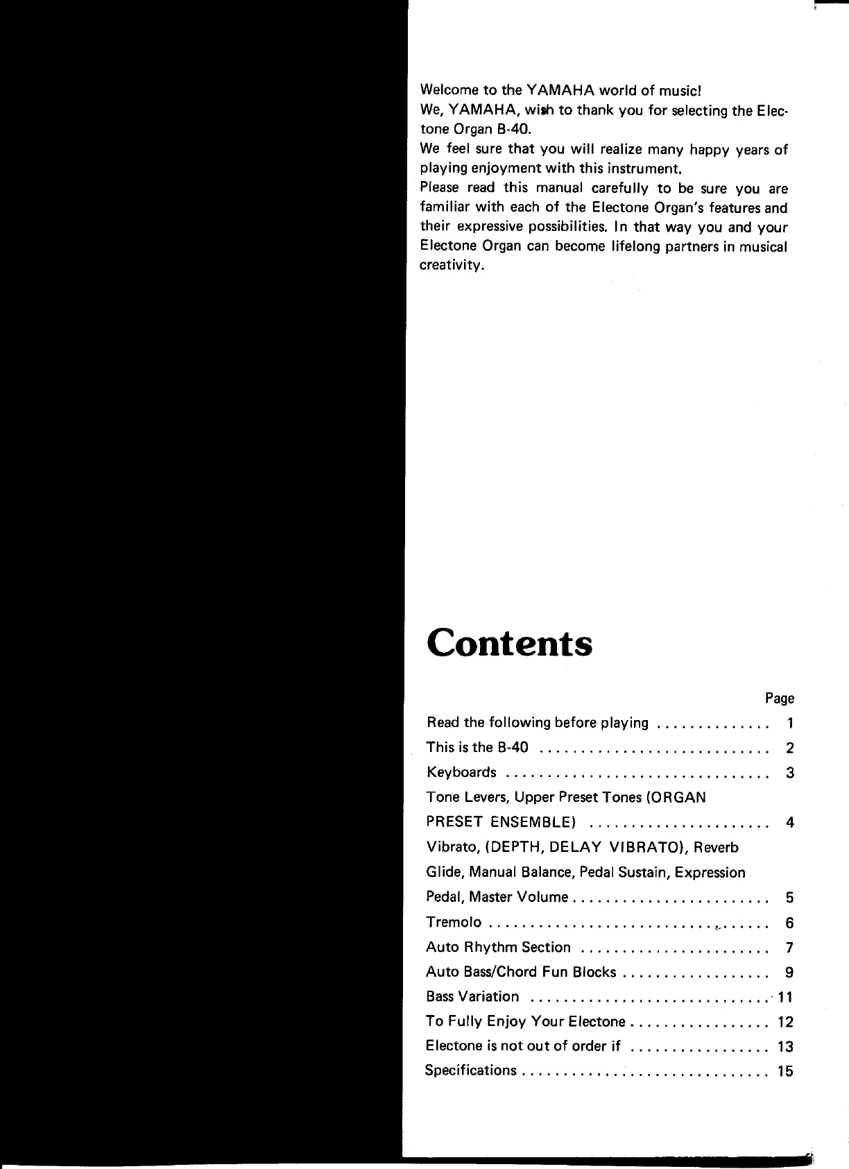 Yamaha Electone B-40 - Contents