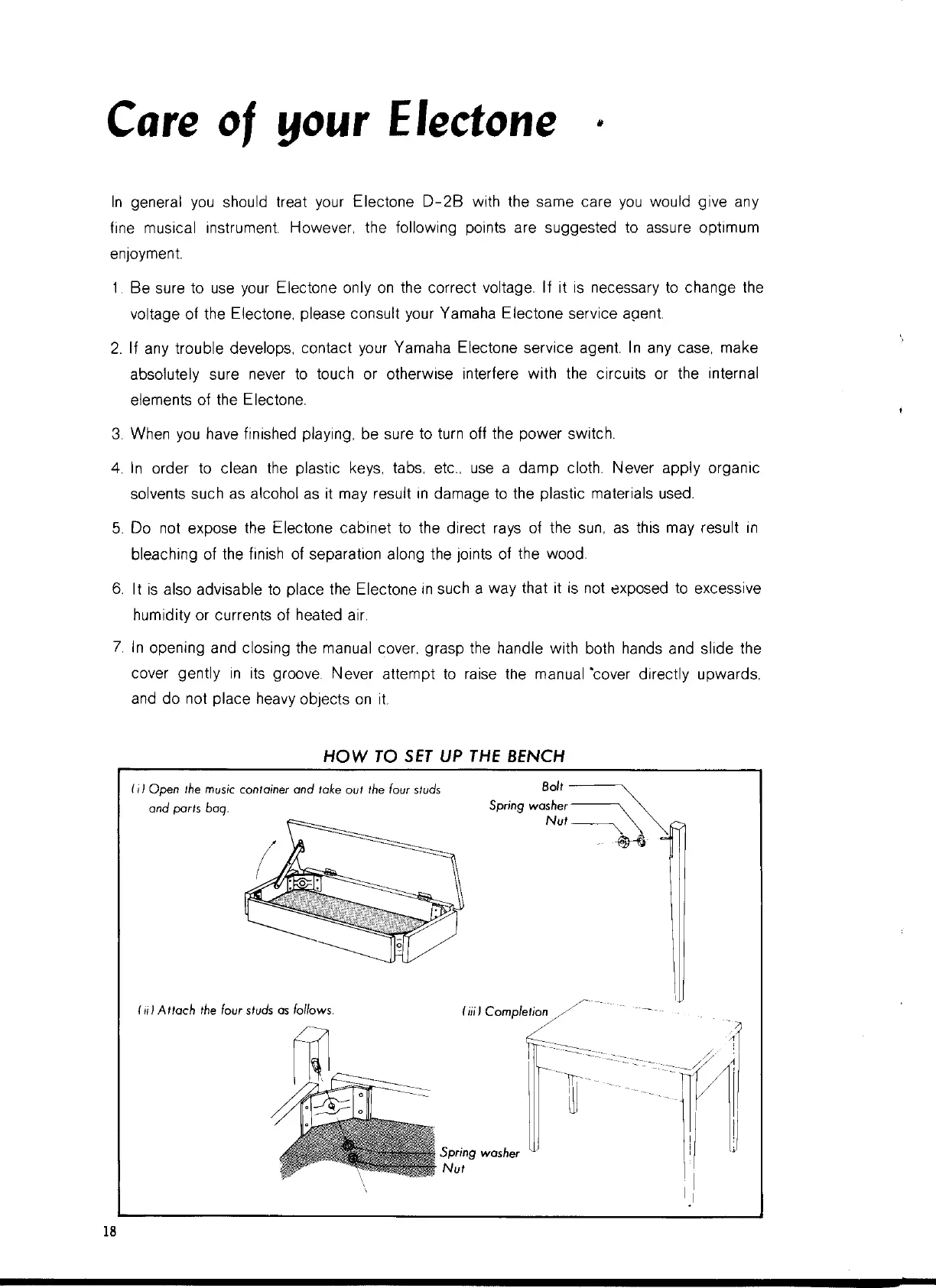 Yamaha Electone D-2B - Care and Maintenance of Your Electone