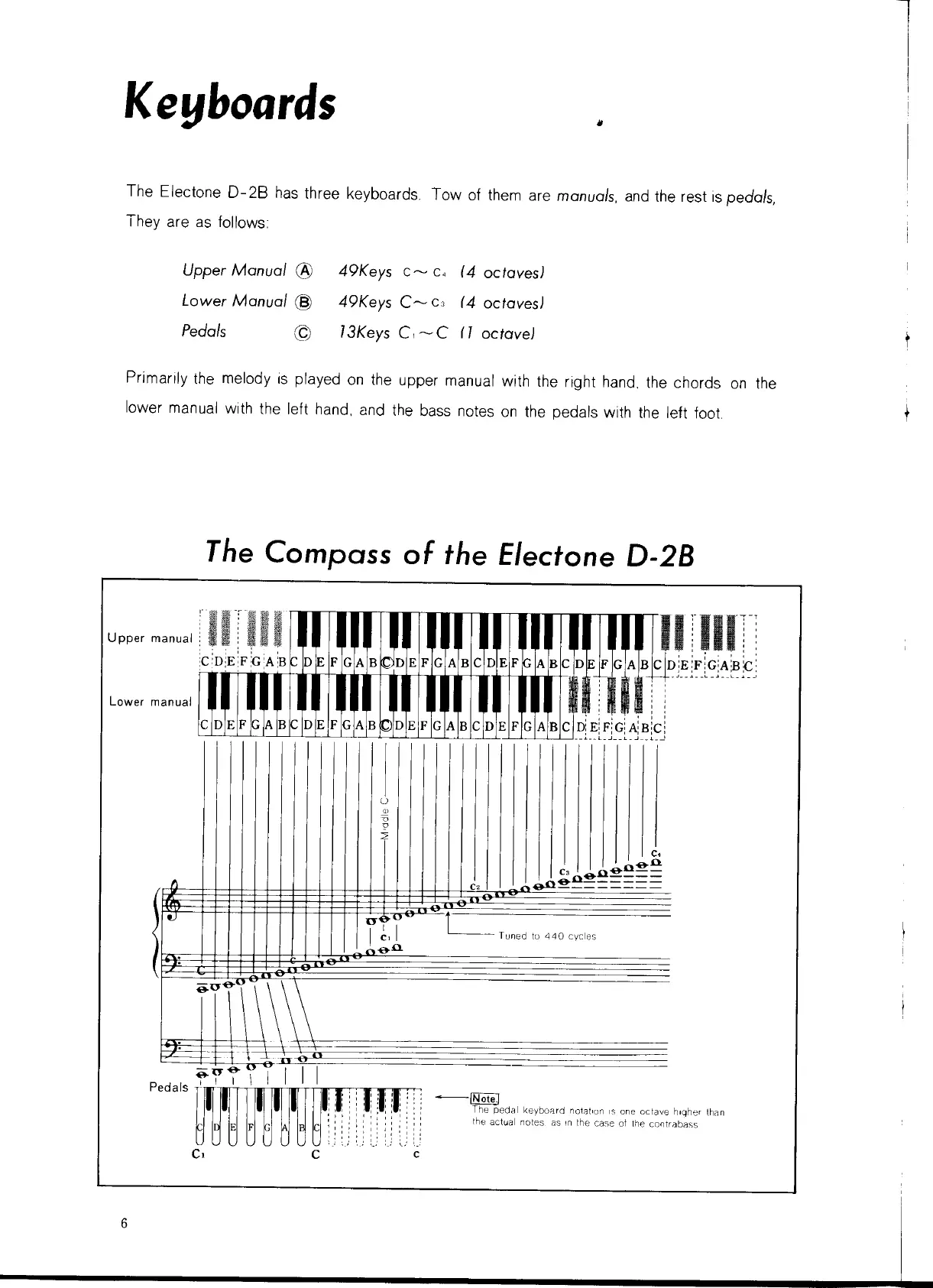 Yamaha Electone D-2B - Electone D-2 B Keyboard Compass Diagram