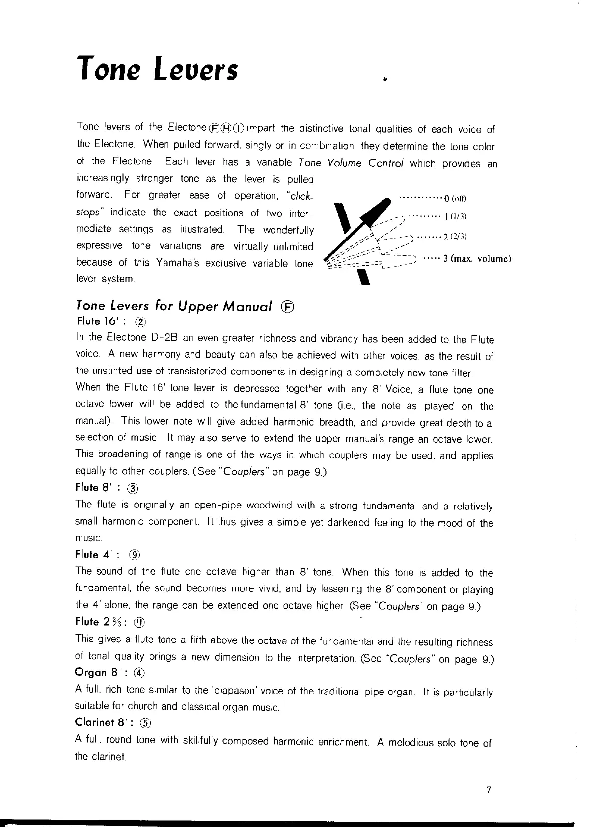 Yamaha Electone D-2B - Tone Levers for Sound Shaping; Tone Levers for Upper Manual