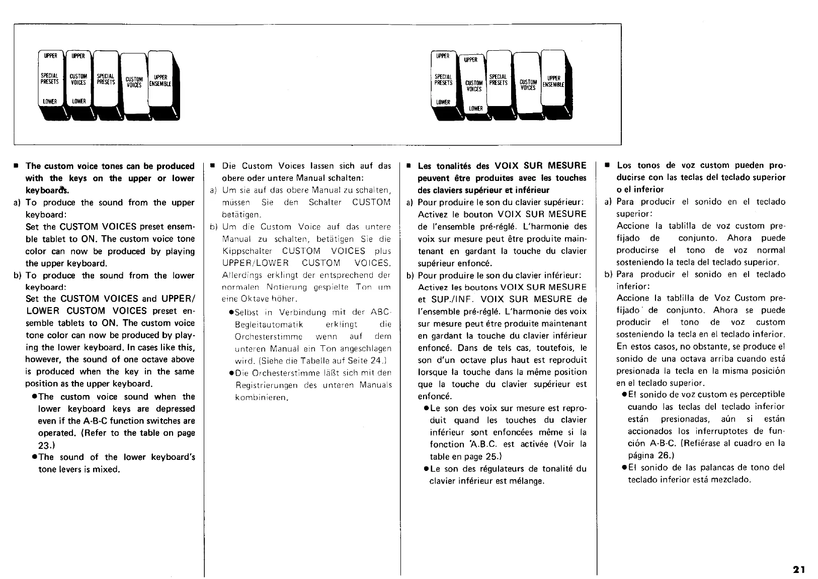 Yamaha Electone D-65 - The Custom Voice Tones Can be Produced with the Keys on the Upper or Lower Keyboards