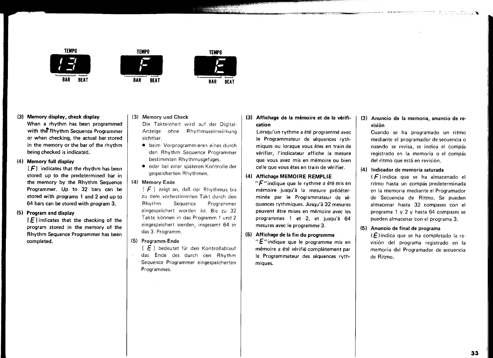 Yamaha Electone D-65 - Memory Display, Check Display; Memory Full Display; Program End Display