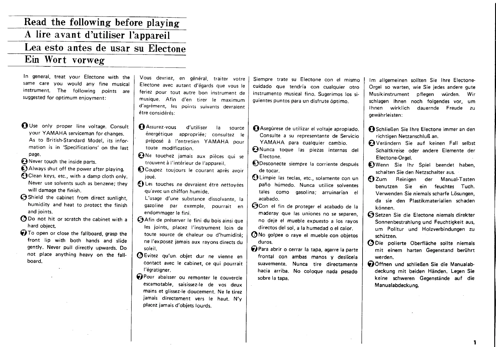 Yamaha Electone D-80 - Important Setup and Safety Instructions