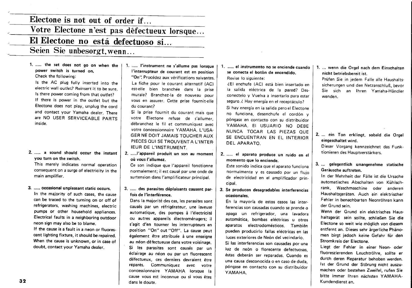 Yamaha Electone D-80 - Troubleshooting Guide; Common Operational Issues and Solutions