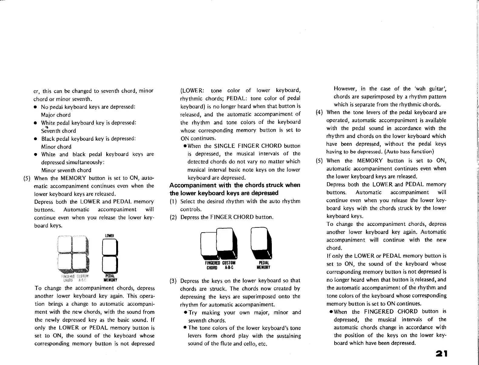 Yamaha Electone D-85 - Accompaniment with the Chords Struck When the Lower Keyboard Keys Are Depressed