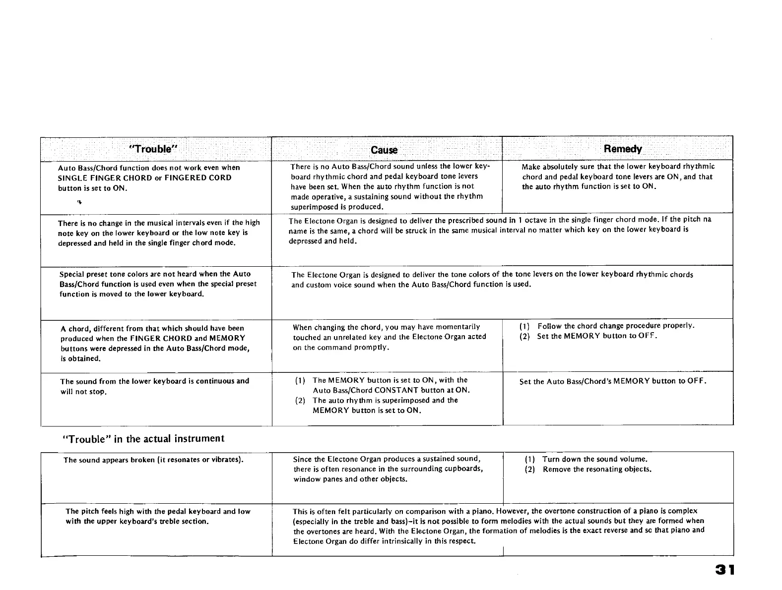 Yamaha Electone D-85 - Troubleshooting Specific Functions