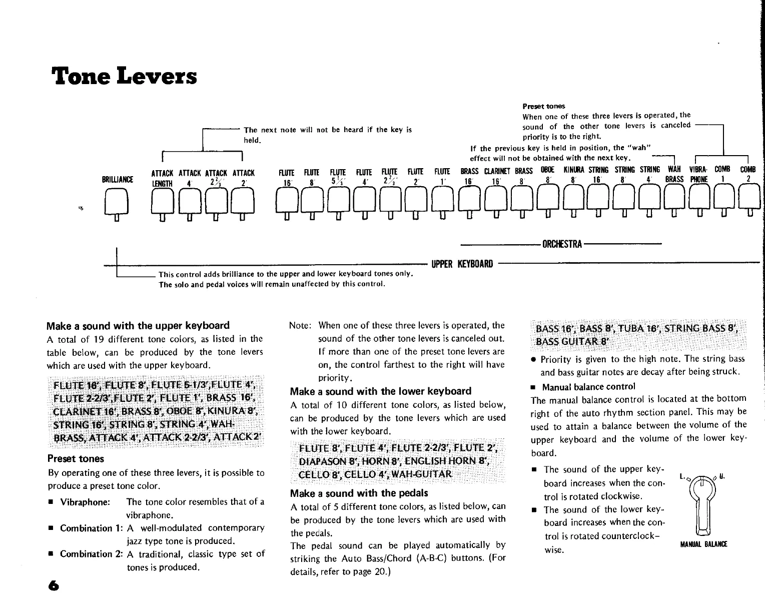Yamaha Electone D-85 - Detailed Tone Lever Functions