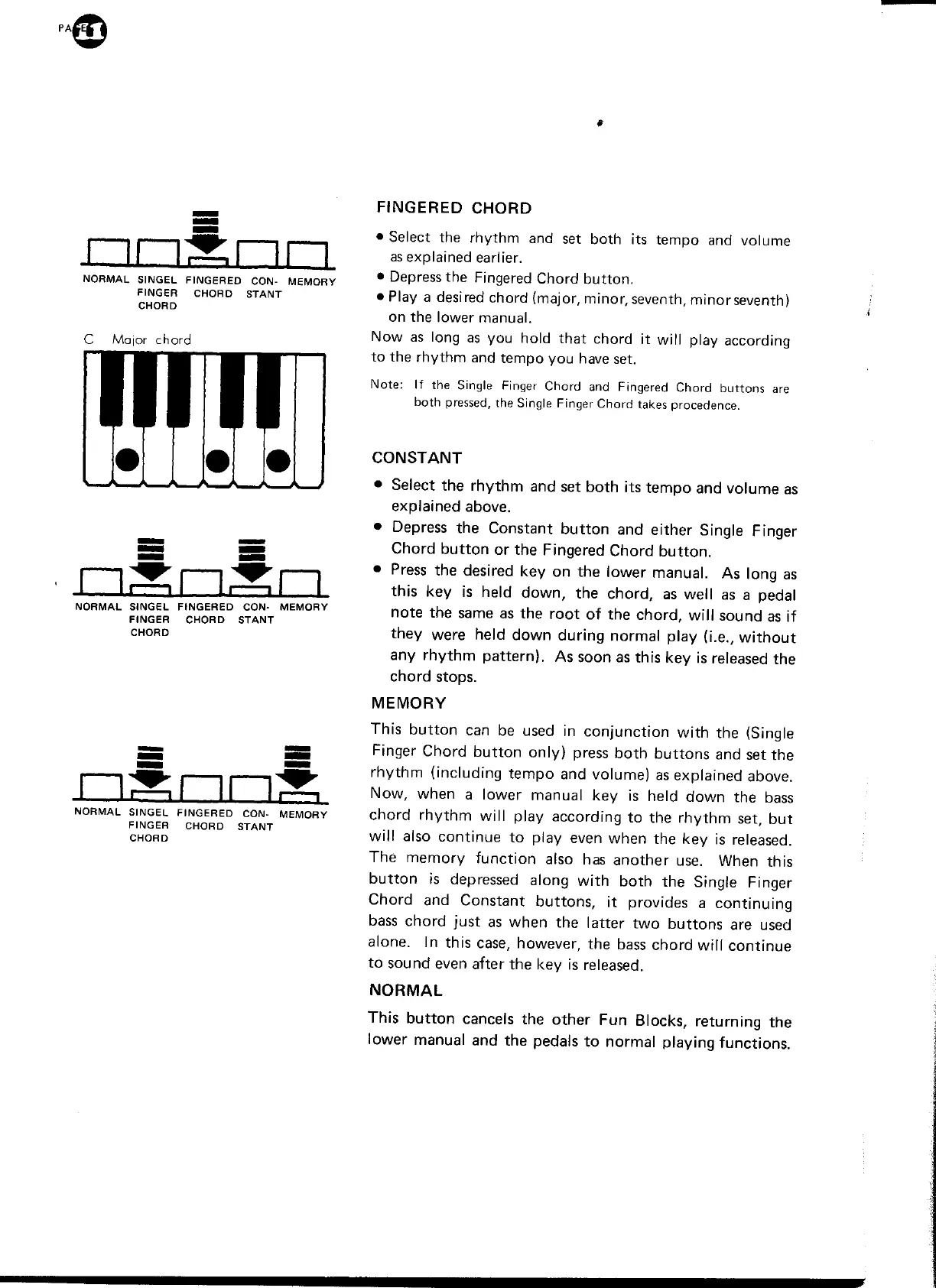 Yamaha Electone DK-40C - Fingered Chord; Constant Chord Mode; Memory and Normal Modes