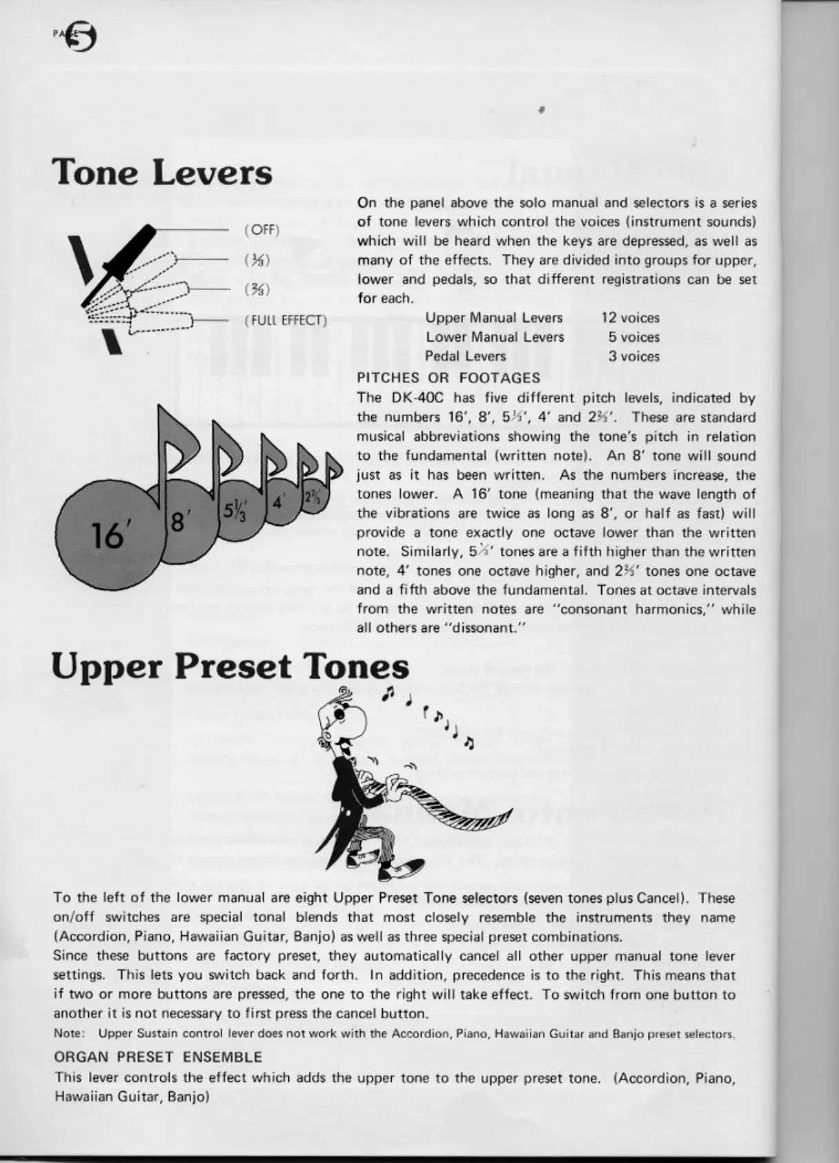 Yamaha Electone DK-40C - Tone Levers and Effects; Upper Preset Tones