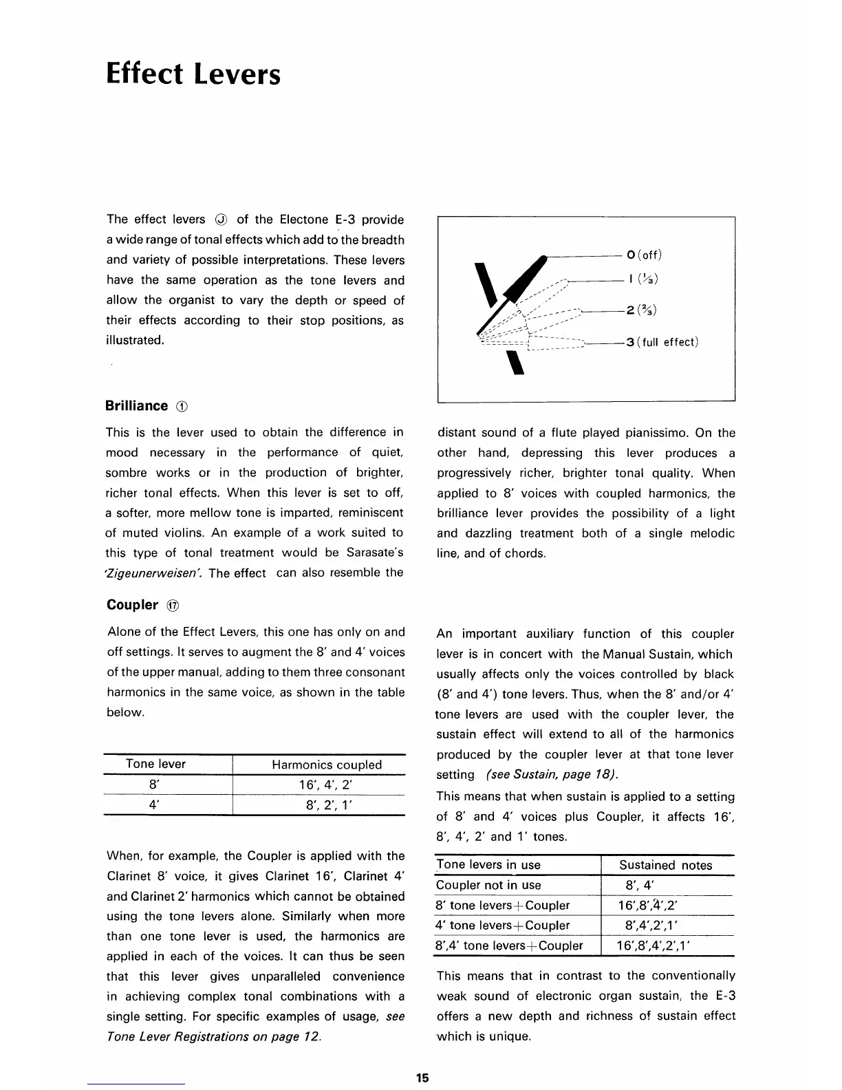 Yamaha Electone E-3 - Effect Levers; Brilliance