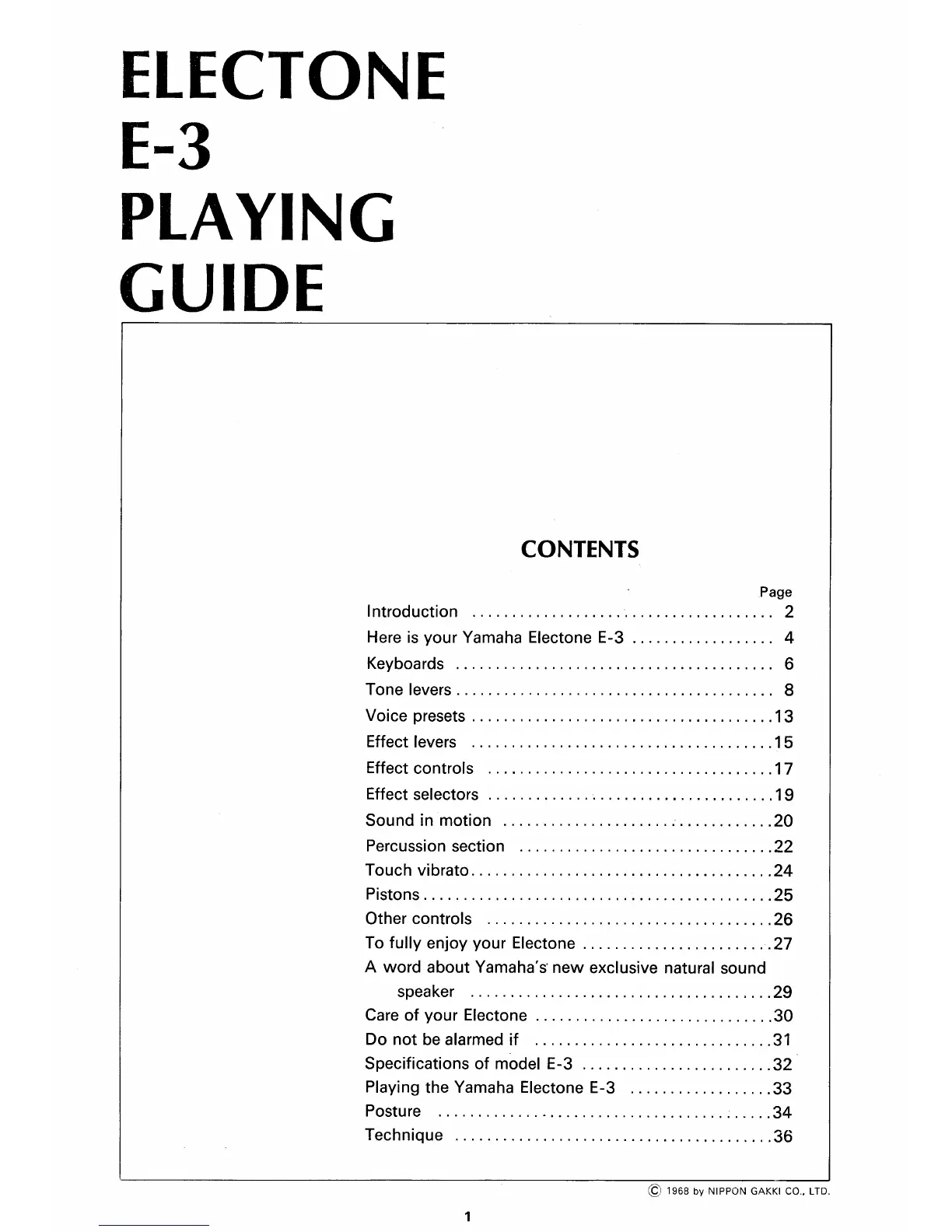 Yamaha Electone E-3 - Contents