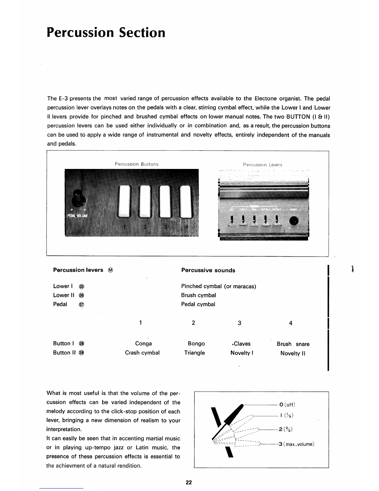 Yamaha Electone E-3 - Percussion Section; Percussion Levers; Percussive Sounds