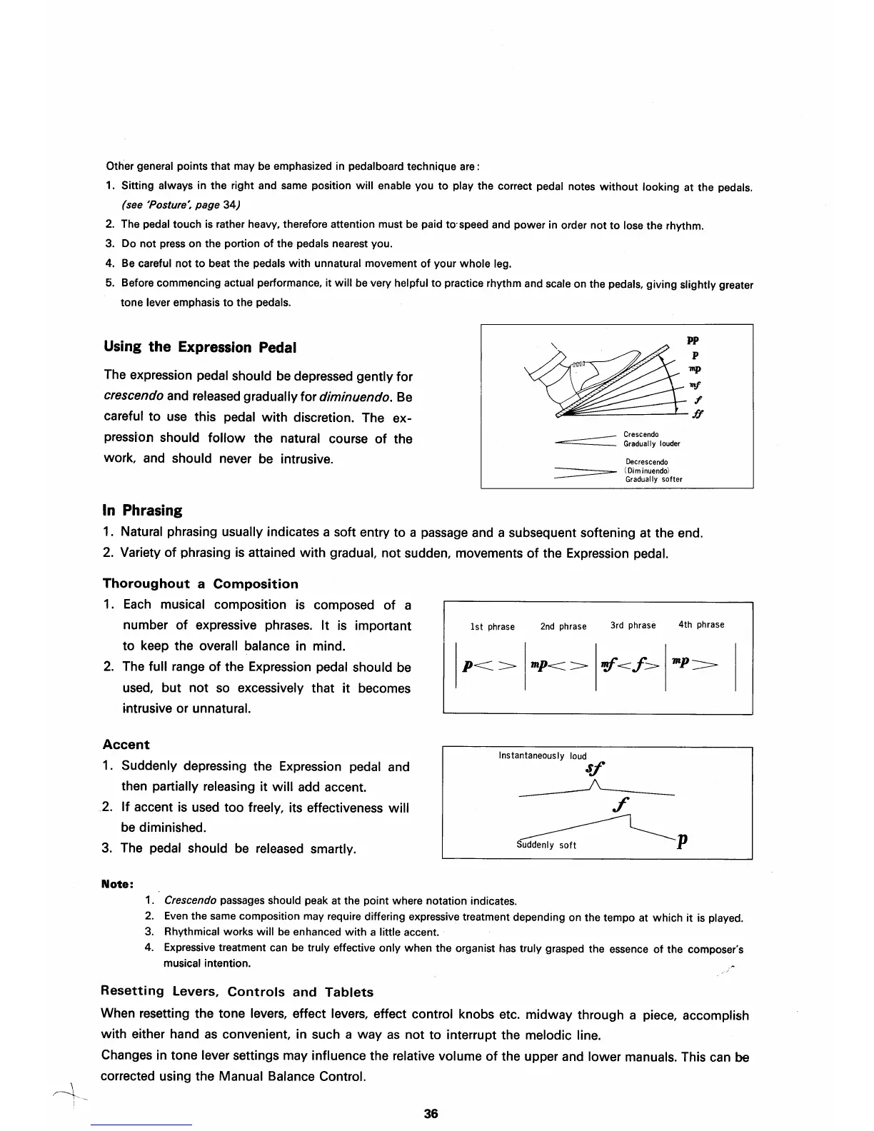 Yamaha Electone E-3 - Using the Expression Pedal; In Phrasing; Accent; Resetting Levers, Controls and Tablets
