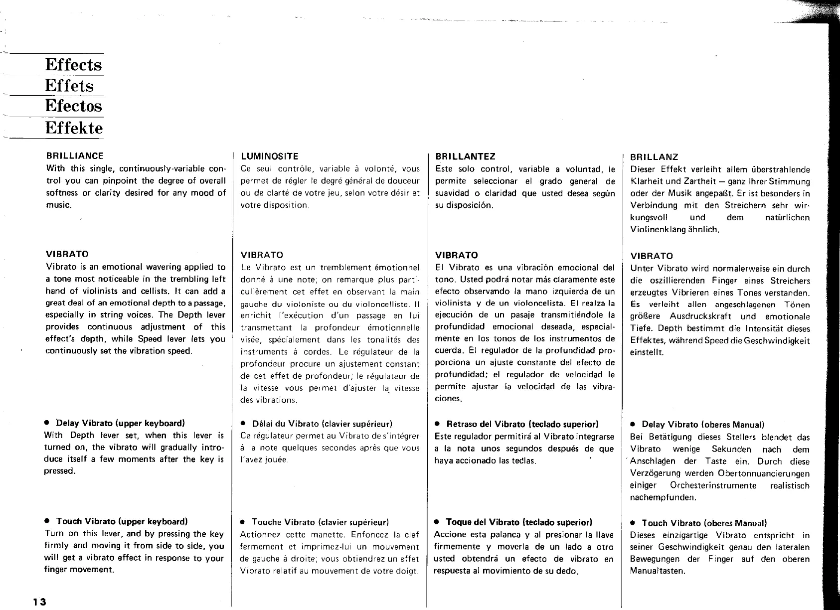 Yamaha Electone E-30 - Effects; BRILLIANCE; VIBRATO
