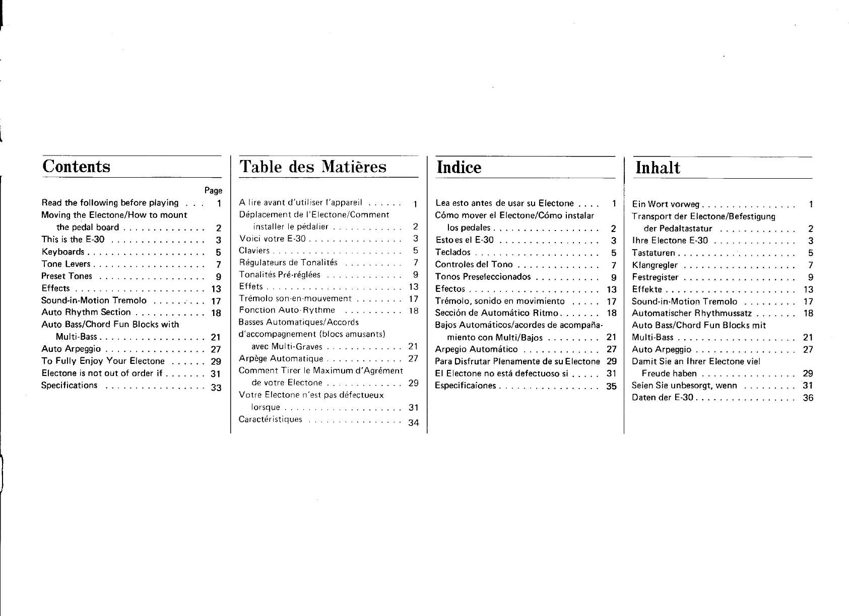 Yamaha Electone E-30 - Contents
