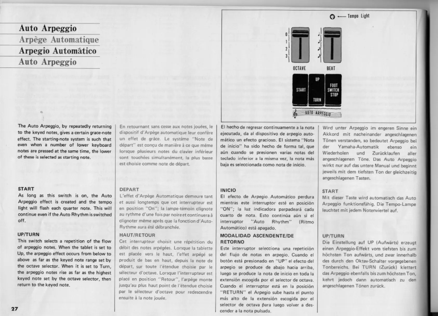 Yamaha Electone E-30 - Auto Arpeggio; START; UP;TURN