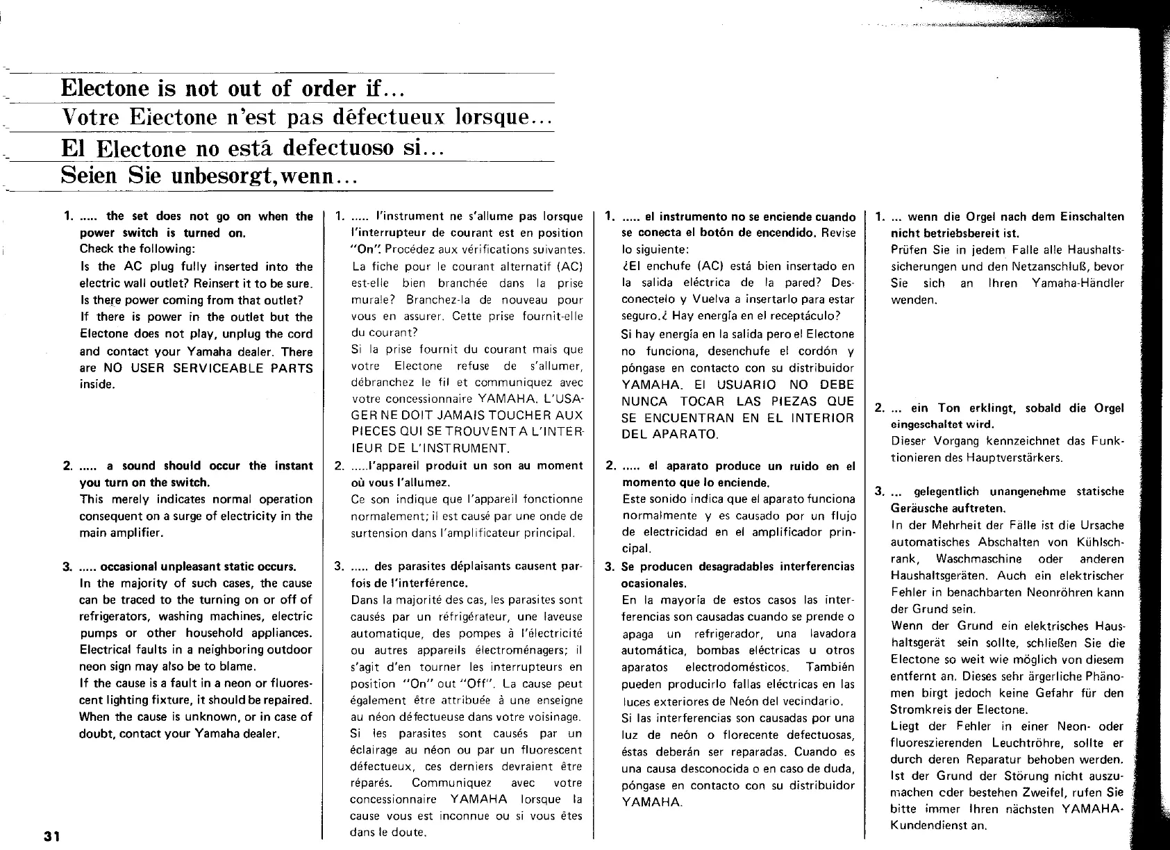 Yamaha Electone E-30 - Electone is not out of order if...