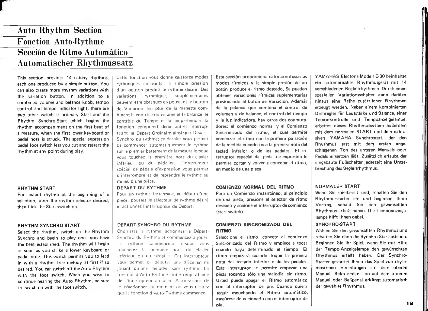 Yamaha Electone E-30 - Auto Rhythm Section; RHYTHM START; RHYTHM SYNCHRO-START