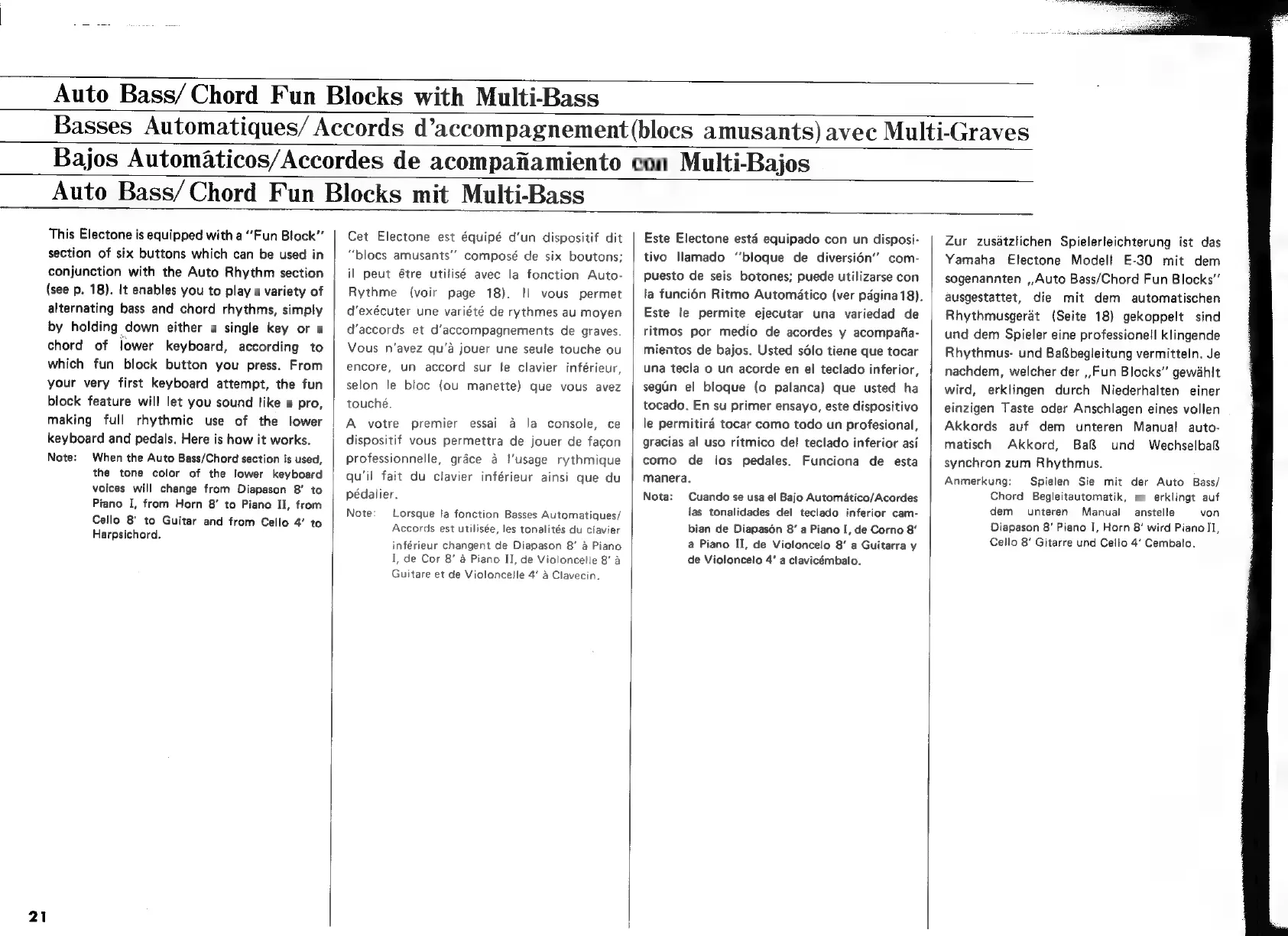 Yamaha Electone E-30 - Auto Bass;Chord Fun Blocks with Multi-Bass