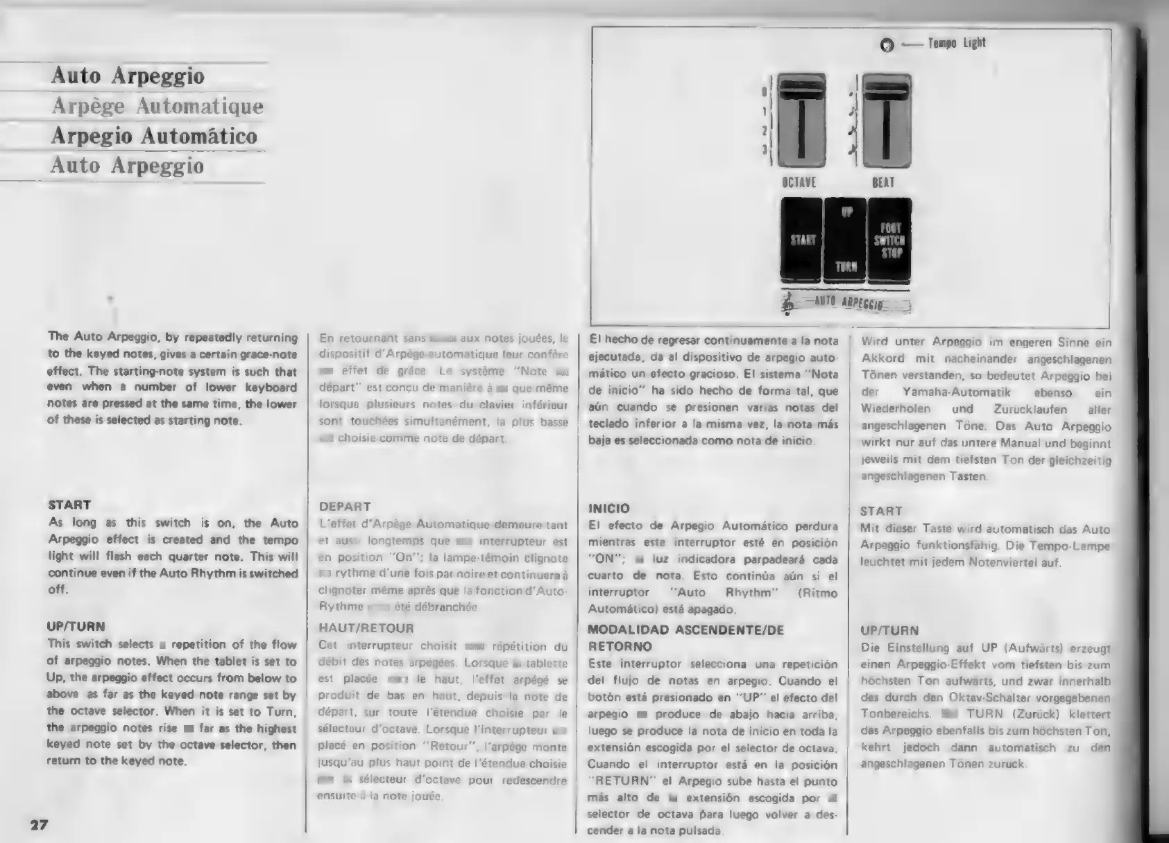 Yamaha Electone E-30 - Auto Arpeggio; START; UP;TURN