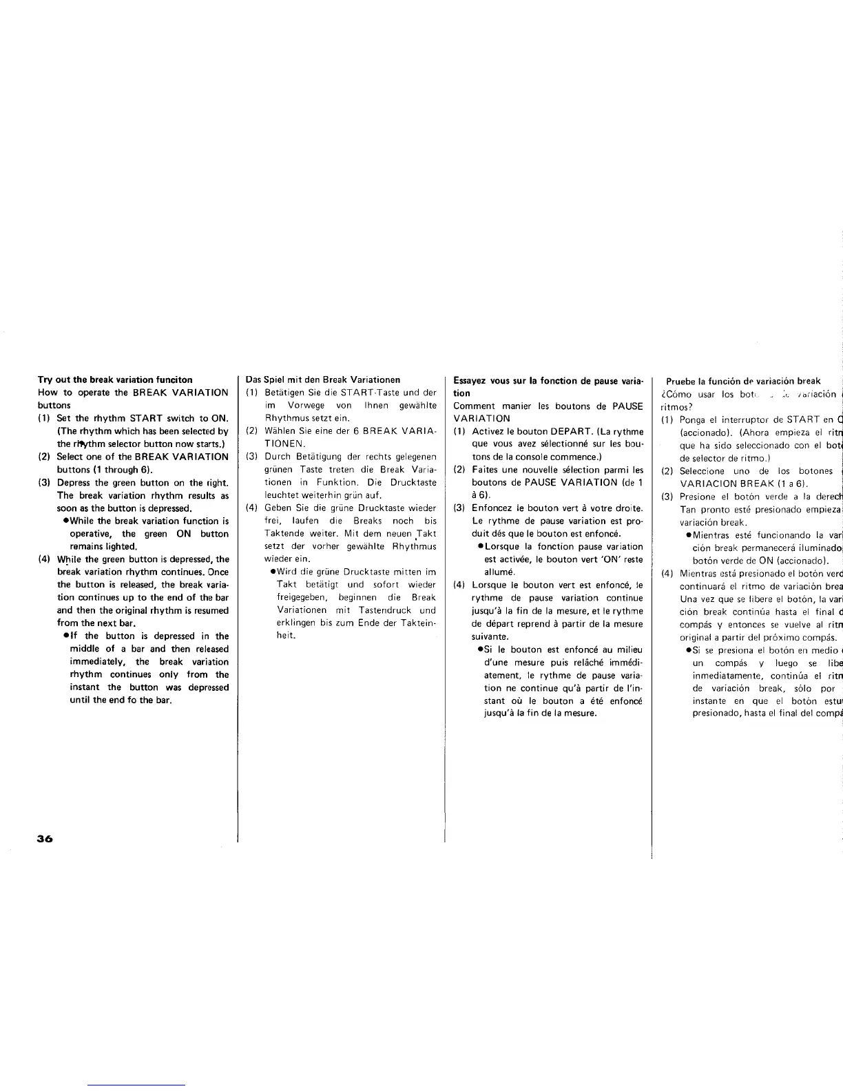 Yamaha Electone E-45 - Operating Break Variation Buttons