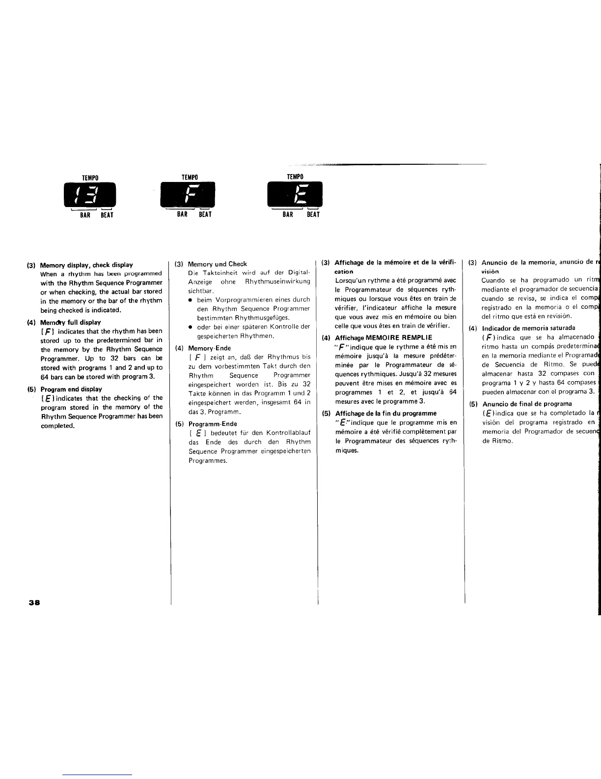 Yamaha Electone E-45 - Digital Display Memory and Program Status; Memory and Program End Indicators