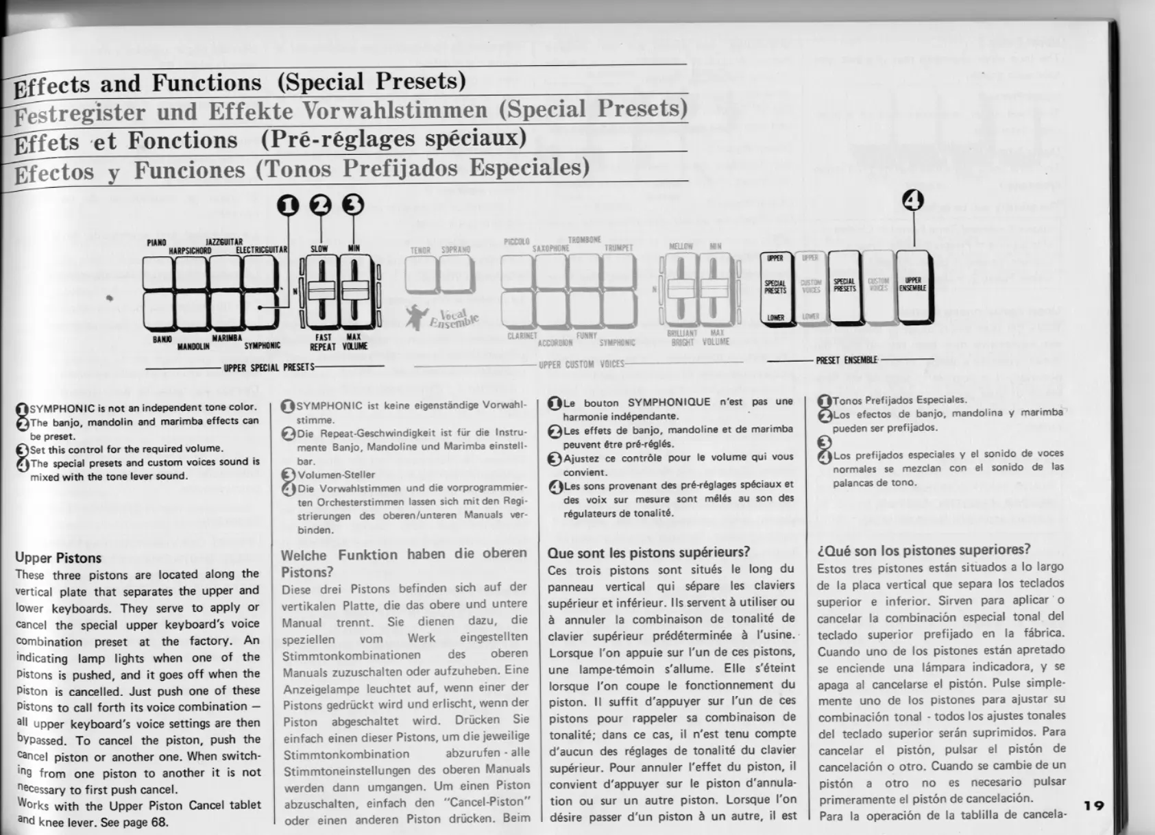 Yamaha Electone E-45 - Special Presets and Effects; Upper Pistons Functionality and Priority