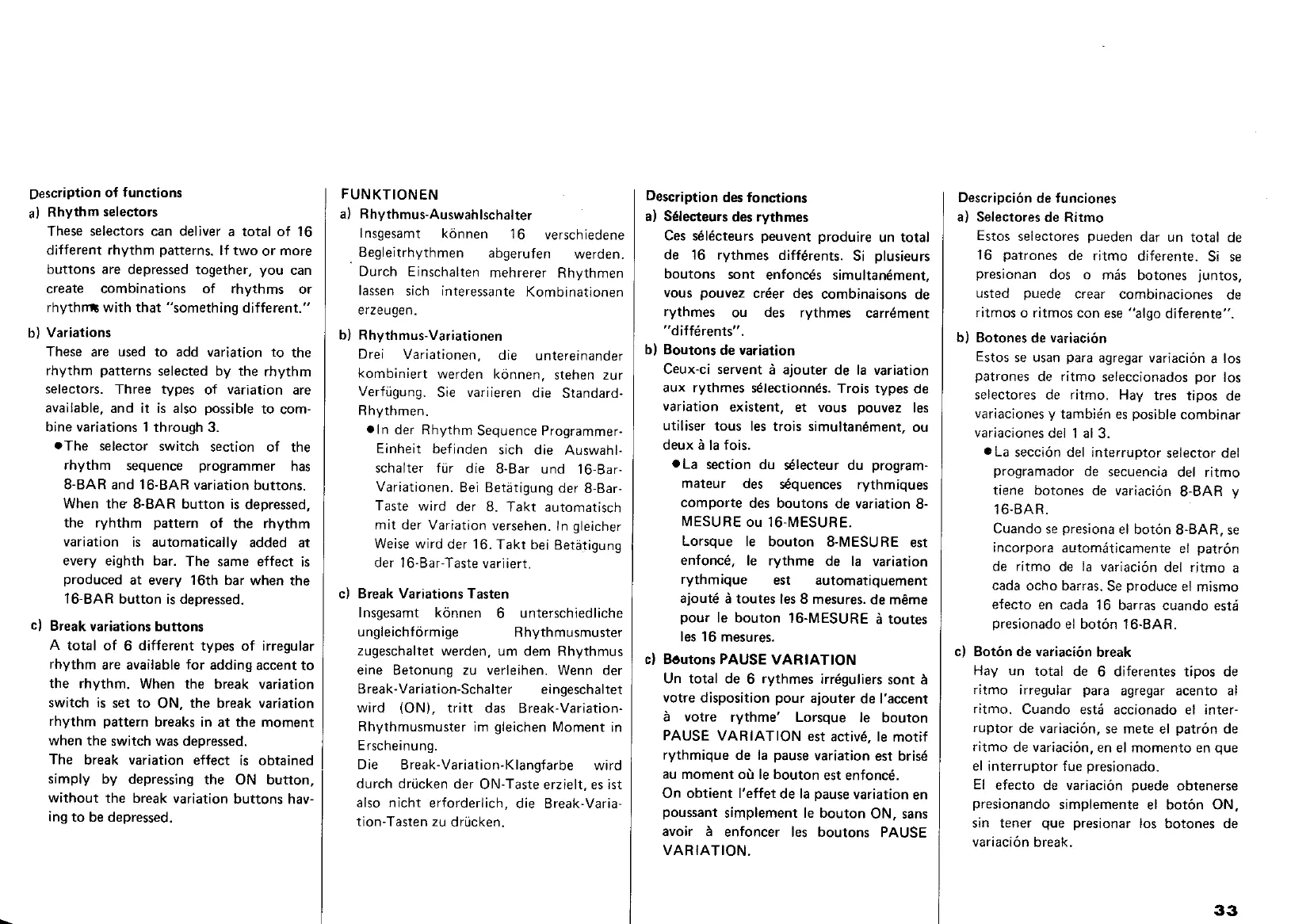 Yamaha Electone E-45 - Auto Rhythm Function Details; Rhythm Variation Types and Usage