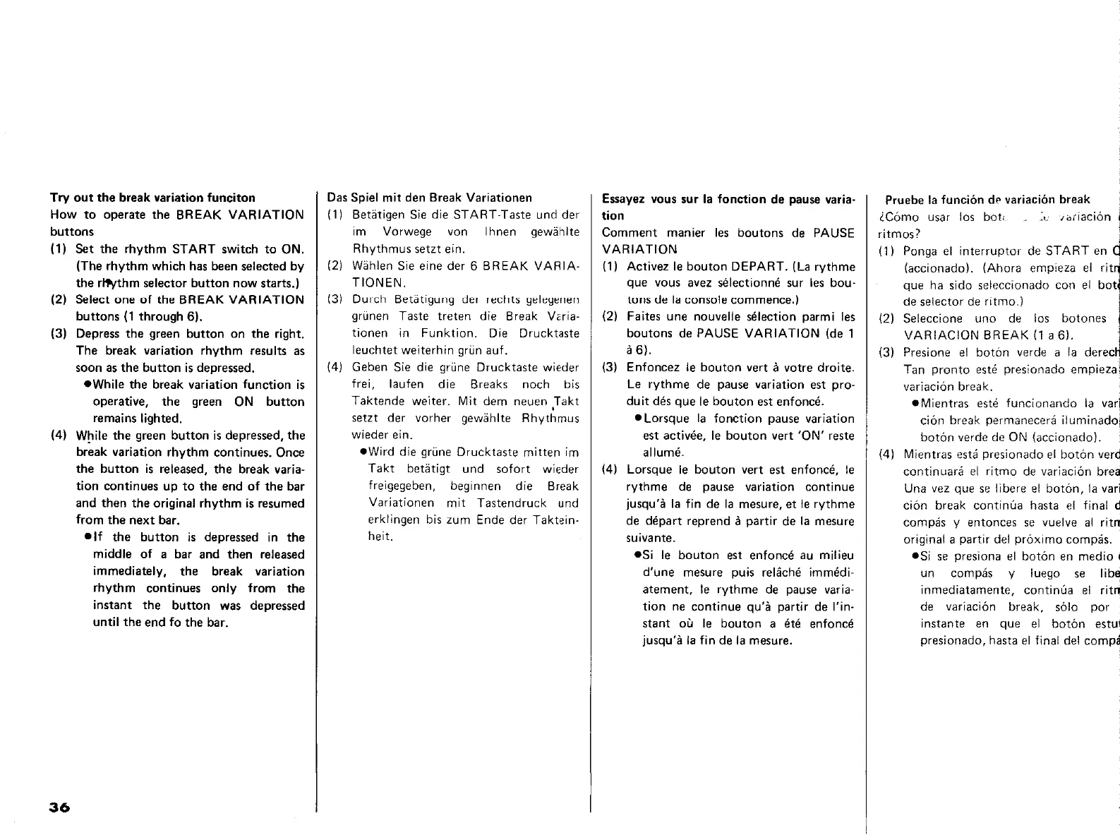 Yamaha Electone E-45 - Operating Break Variation Buttons