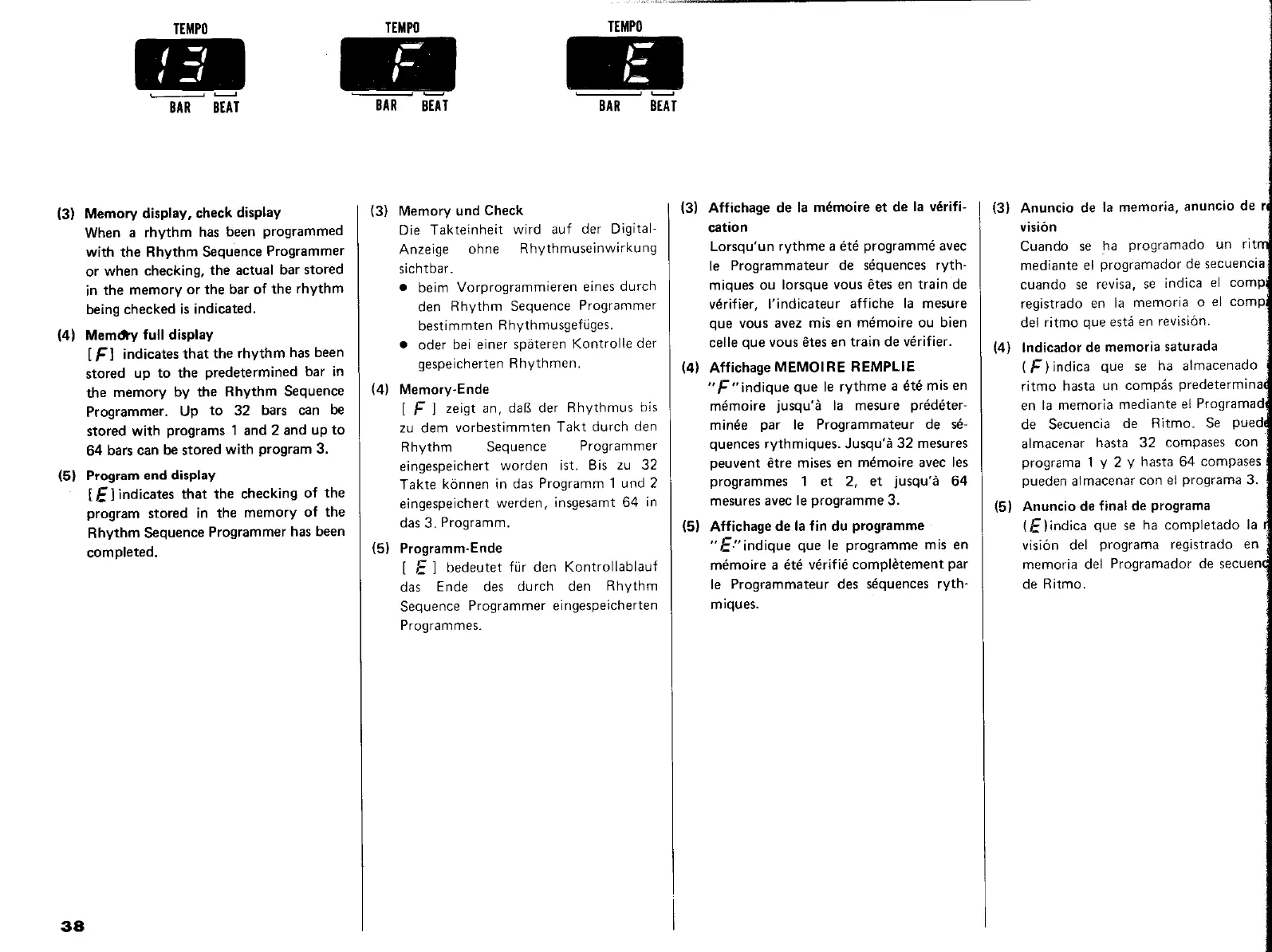 Yamaha Electone E-45 - Digital Display Memory and Program Status; Memory and Program End Indicators