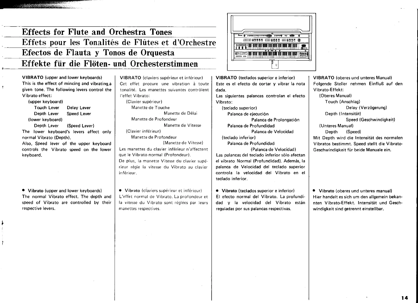 Yamaha Electone E-50 - Flute and Orchestra Tone Effects; Vibrato, Tremolo, and Delay Controls