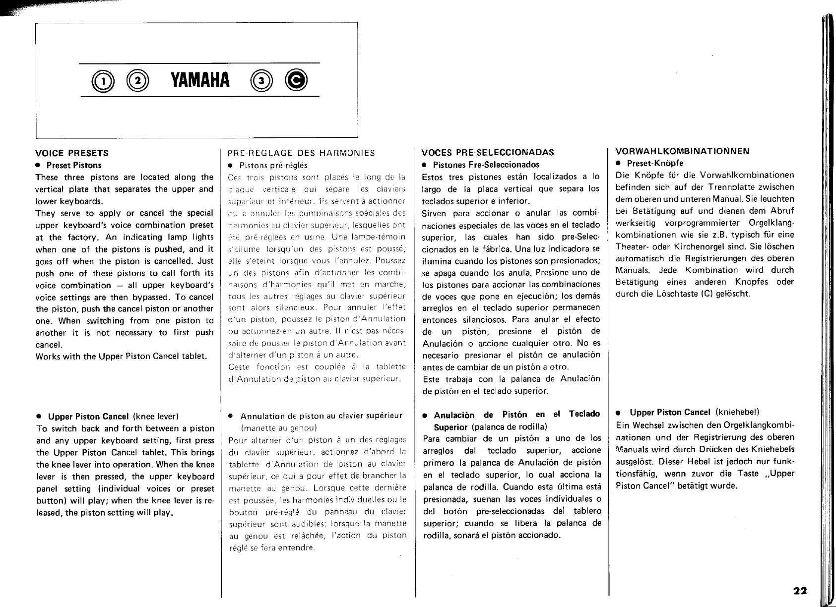 Yamaha Electone E-50 - Performance Features and Presets; Preset Voice Combinations