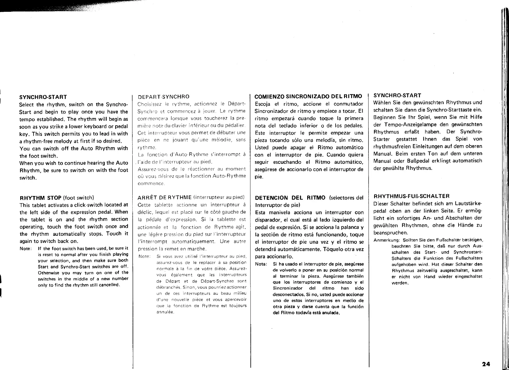 Yamaha Electone E-50 - Synchro-Start; Rhythm Stop